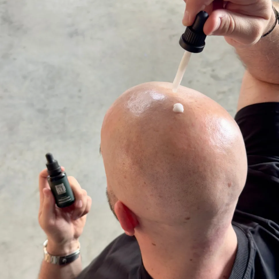 Vaihe 1: Puhdista hiuspohja – Vaihe 2: Anti-pigmentoiva kaljuseerumi – Vaihe 3: Afftershave/ hoitovoide – Vaihe 4: Aurinkosuoja