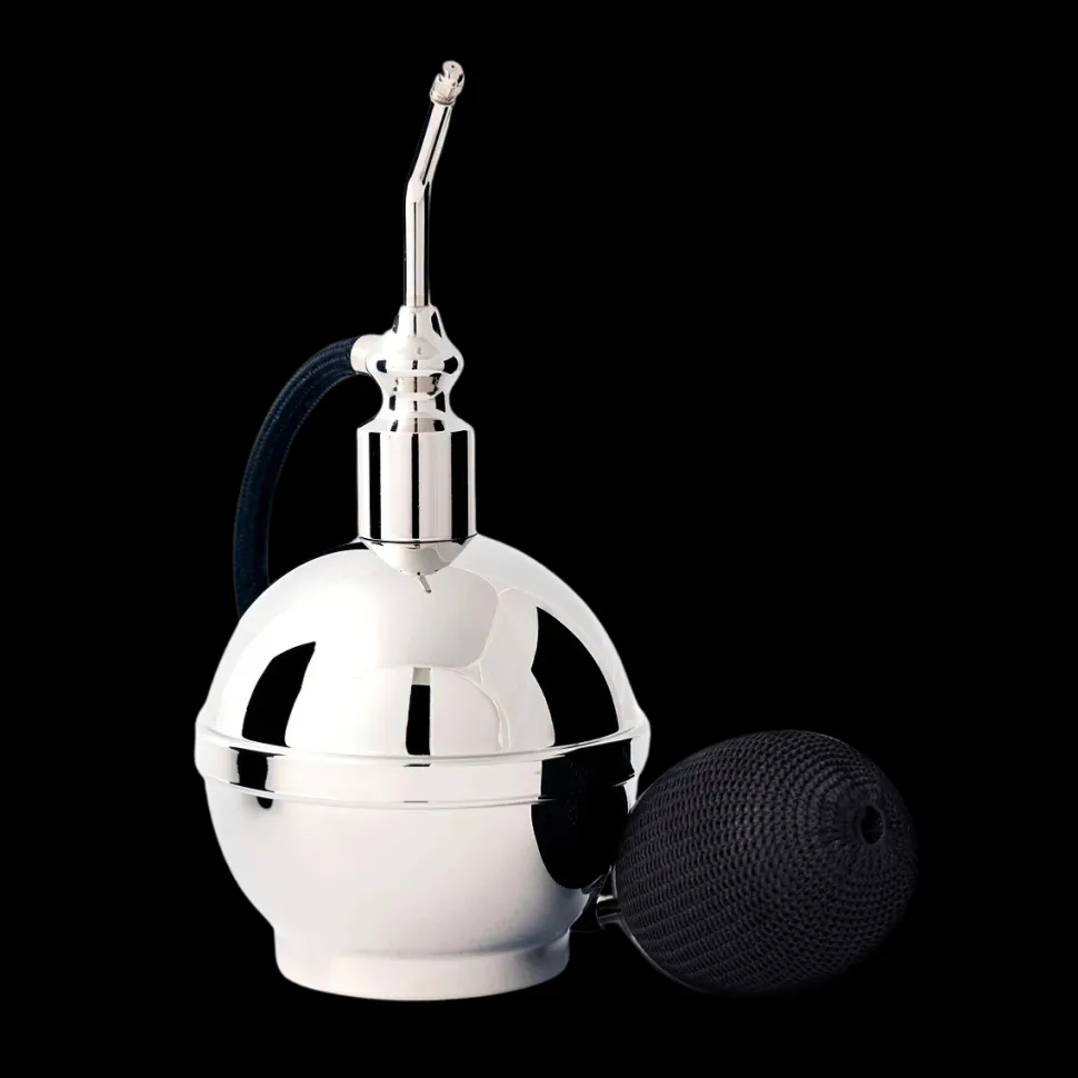 Tyylikkäästi kromviimeistelty hajuvesisumutin, jonka voit täyttyy suosikki hajusteellasi. Oli se sitten kölnivesi, parfyymi tai kevyempi tuoksuvesi, sumutin tekee sen annostelusta iholle ylellistä. Mainio elementti peilipöydälle viskipullon viereen. Yksi suihkaus nostaa itsetuntoa noin puolella. Mahtava instrumentti tuomaan arkeen yleillisyyttä tai tekemään juhlasta juhlan.