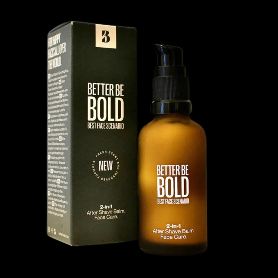 Better Be Boldin uudessa hoitotuotteessa yhdistetään kaksi maailmaa: jo ennestään rakastettu kasvovoide, sekä kaikille ihotyypeille yhteensopiva, mieto After Shave balsami. Tuote onkin suunniteltu nimenomaan nämä mielessä pitäen, ja tehokkaan koostumuksensa lisäksi se imeytyy nopeasti kasvoille.