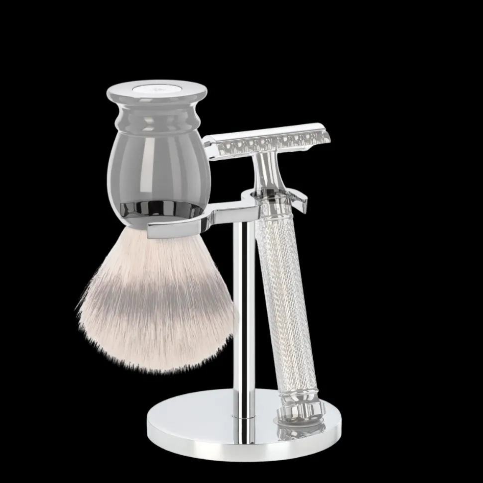 Tyylikäs kromiviimeistelty pidike partahöylälle ja -sudille, jonka materiaali on erittäin pitkäikäistä ja korroosion kestävää. Sopii täydellisesti käytettäväksi useimpien Mühlen parranajovälineiden kanssa.