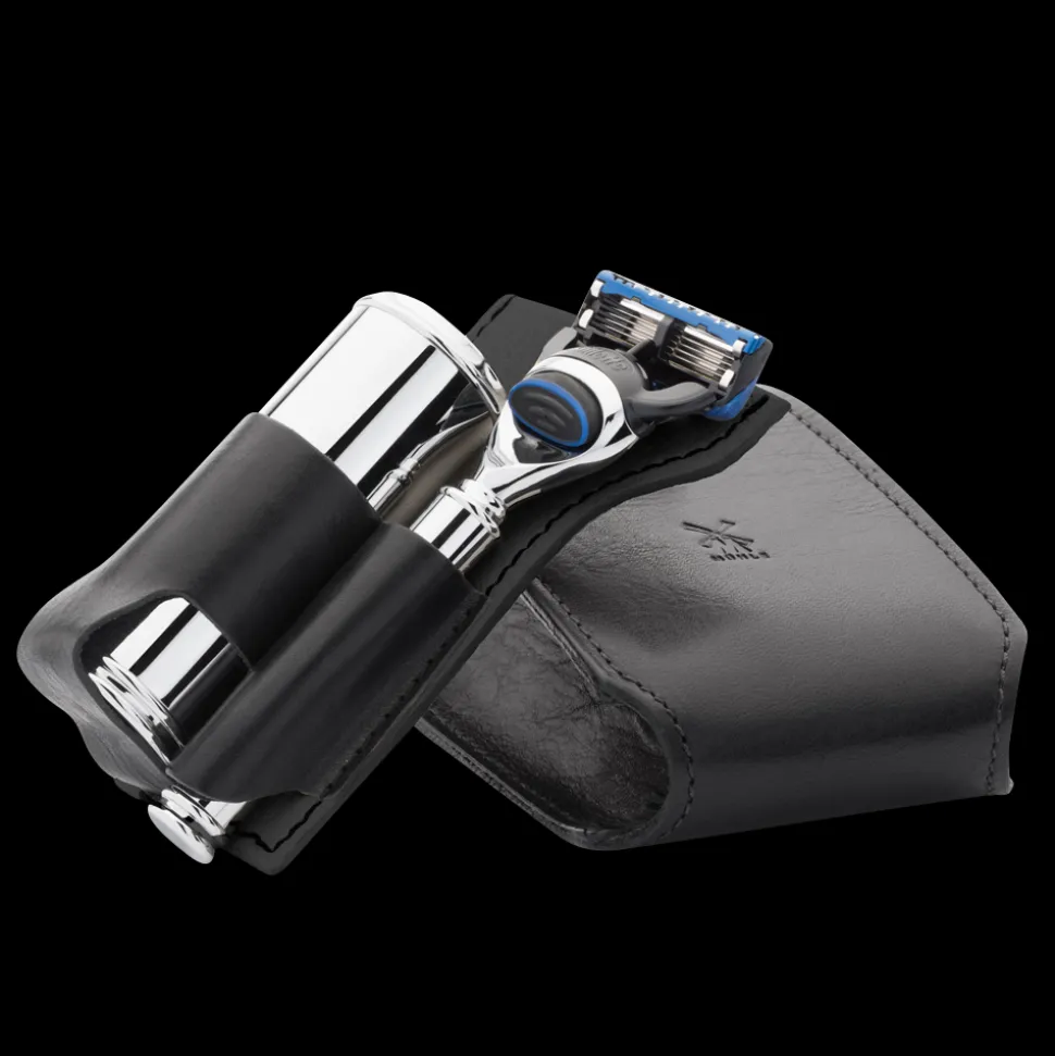 Matkusta tyylillä tai älä matkusta ollenkaan. Tämä matkasetti tekee matkustamisesta entistä nautinnollisempaa ja sinusta aurinkorantojen kuninkaan! Musta nahkakotelo on perinteisesti valmistettu käsin Firenzessä. Luonnollinen lehmännahka on parkittu puhtaasti kasviperäisin keinoin, ja se on erityisen kestävää ja kestää paljon kulutusta. Vuodet jättävät ainutlaatuiset jälkensä ja antavat kotelolle viehättävän patinan. Tämä matkasetti sisältää parranajosuti, joka on valmistettu kromatusta metallista korkealaatuisilla Silvertip Fibre® -kuiduilla (pään halkaisija 21 mm). Mukana tulee yhteensopiva Gillette® Fusion™ 5-teräinen partakone. Erittäin komea kombinaatio.