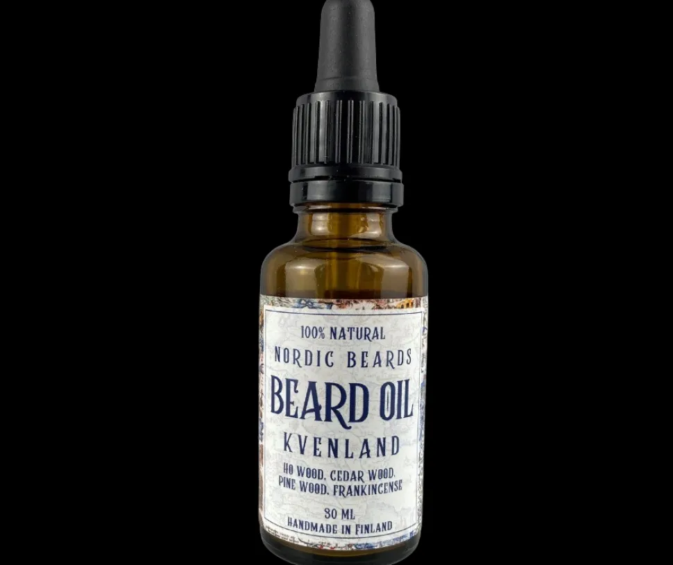 Nordic Beards partaöljy Kvenland on partaa ja ihoa hoitava 100% luonnollinen ja vegaaninen partaöljy, joka sisältää runsaasti hoitavia öljyjä. Valmistettu käsityönä Suomessa. Partaöljy tekee parrasta pehmeän ja antaa sille terveen kiillon. Partaöljyn käyttö myös ehkäisee ihon kutinaa ja hilseilyä parran alla. Sopii päivittäiseen käyttöön.