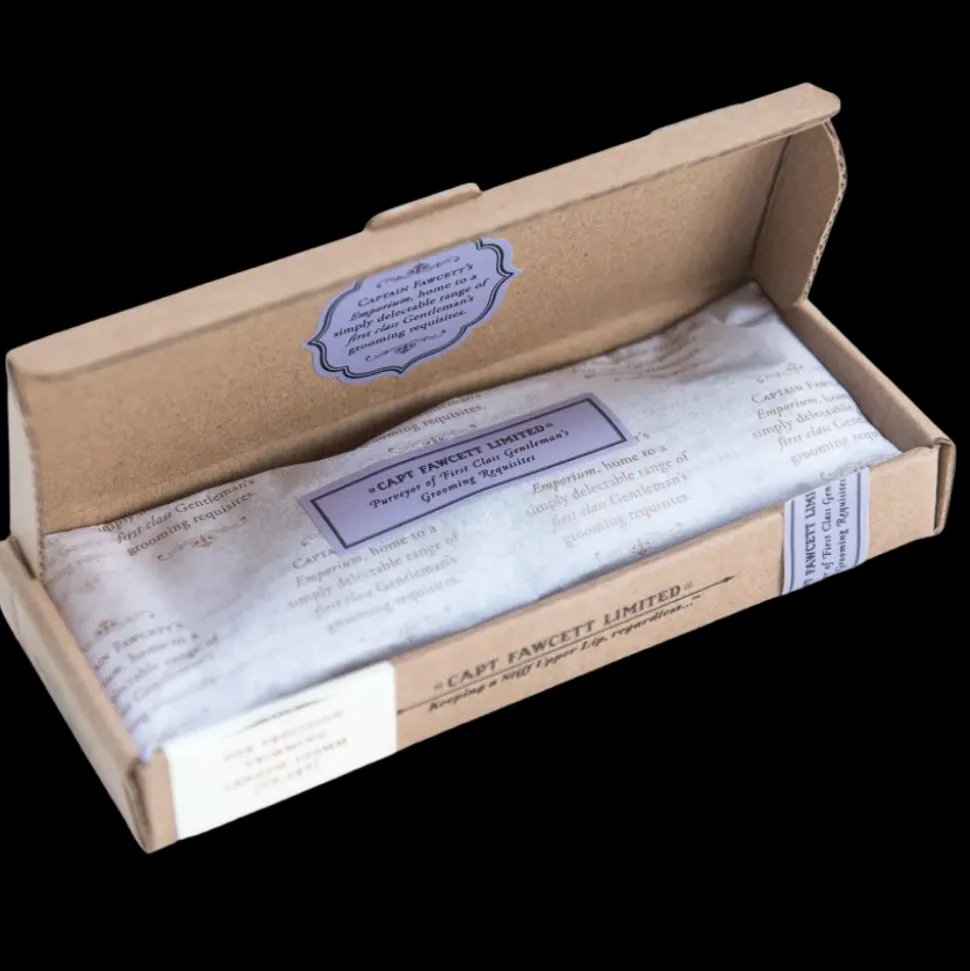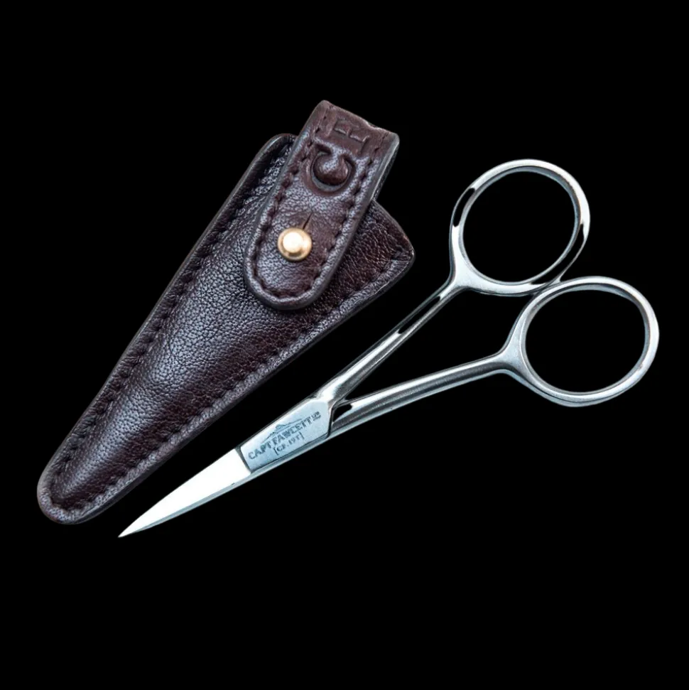 Tyylikkäimmät sakset vähään aikaan. Kapteeni on tapansa mukaan nähnyt suurta vaivaa täydellisten saksien ja paketin löytämiseksi. Saksien mukana tulee terää suojaava, vahvasta nahasta käsityönä valmistettu kotelo. Sakset sopivat viiksien ja parran hienosäätöön, mutta miksei myös muuhunkin.