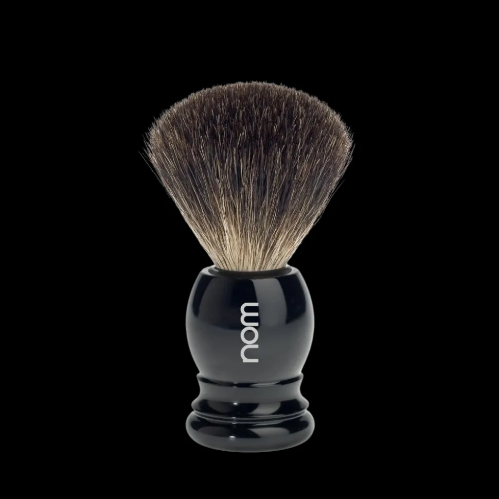Erittäin tyylikkäitä ja sulavia muotoja säteilevä Muhlen Nom partasuti. Valitse edullisempi villisiankarva suti tai pehmeämpi mäyränkarva suti, jos pinkka kestää.
