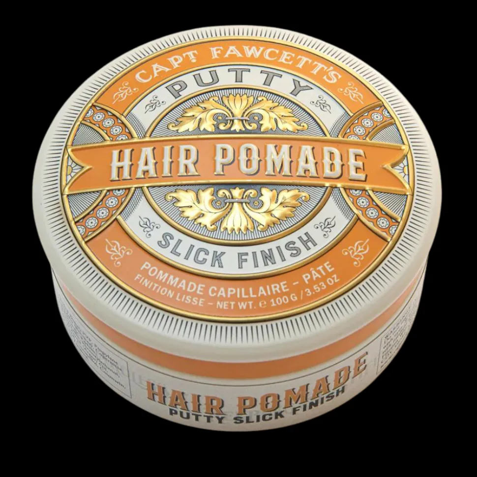 Timanttinen Captain Fawcett on tehnyt uuden aluevaltauksen hyppäämällä hiusmuotoilun syvään päähän! Putty Pomade on tehokas muotoilutuote, joka tarjoaa hallittua pitoa paksuille ja keskipaksuille hiuksille. Loistavan monipuolinen pomade monenlaisiin tyyleihin, jotka vaativat rohkeaa pitoa sopivan kiiltävällä viimeistelyä. Putty Pomade on oiva valinta, kun haluat varmistua siitä että tyylisi pysyy napakasti paikoillaan vaativassakin tilanteessa. Tuoksu on pehmeä ja hienostunut, ja siinä yhdistyvät vehreät puiset sävyt, mausteiset tuoksut, sekä ripaus sitrusta.