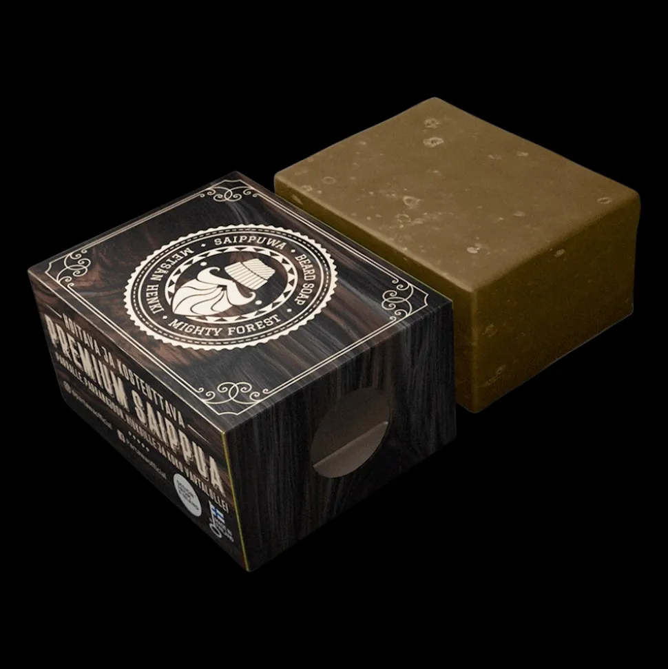 Kertakaikkiaan loistava palasaippua parran pesuun. Laadukkaat ainesosat kuten sheavoi, kookos- ja jojobaöljy tekevät parrasta pehmeän kertaheitolla. Näiden lisäksi mineraalipitoinen ja puhdistava himalajanvuorisuola hoitaa kuivaa ihoa joka pesun yhteydessä. Tuotetta voi käyttää myös kasvojen ja hiusten hoitavaan pesuun.